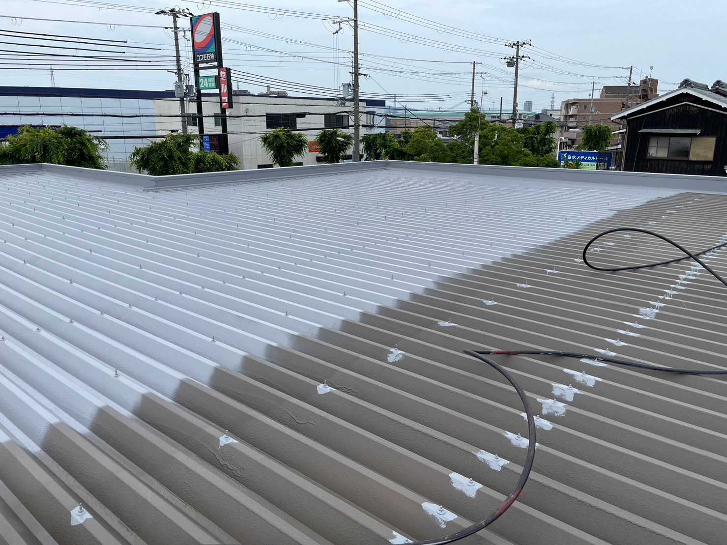 本日ご紹介は、神戸市西区某雑貨店の金属屋根防水工事です!!