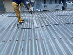 高圧洗浄(屋根の汚れを取り除きます)